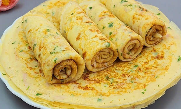 Идеальные тонкие ажурные блинчики можно приготовить и без лишних усилий, притом сразу с начинкой. Времени на фаршировку тратить не придется — все ингредиенты вмешиваются прямо в тесто. Горячие, с тянущимся сыром и ароматом свежей зелени, они разлетаются со стола мгновенно. А если что-то останется, такие блинчики в холодном виде отлично заменяют привычный бутерброд в школьном ланче или на перекусе в офисе.