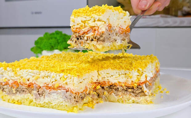 «Мимозу» многие считают тяжелым и суховатым зимним салатом, но на севере ее готовят совсем иначе. Главный секрет здесь кроется в правильной шинковке овощей на мелкой терке и использовании домашнего соуса, густой домашней заправке. Он пропитает каждый слой, делая овощи сочными, а рыбу — нежной.