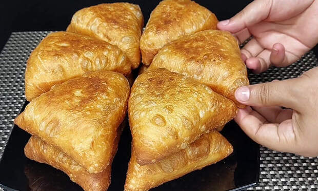 Подавайте горячими или слегка остывшими. Начинка может быть любой: мясной, овощной, грибной или даже сладкой — треугольники остаются нежными и воздушными.