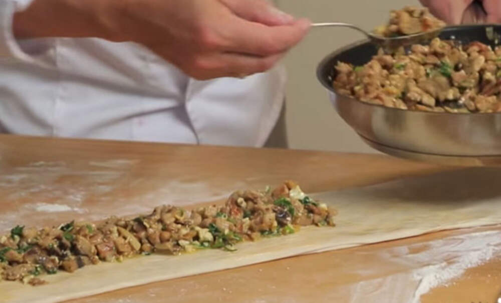 К пирогу с курицей можно подойди совершенно иным способом готовки. Вместо того, чтобы все ингредиенты заворачивать в тесто, мы сначала пожарим всю начинку на сковороде, а потом скрутим сам пирог – он будет почти готов. Наша начинка будет напоминать фарш, но только курица будет не прокрученная, а
