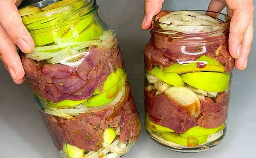 При жарке печень чаще всего получается суховатой, это мясо легко теряет сок. Поэтому намного вкуснее будет приготовить его в стеклянной банке и добавить немного яблок: на вкус они не повлияют, зато сделают печень невероятно мягкой. Ингредиенты: 500 г куриной печени 1 чайная ложка соли 1/3 чайной... Далее