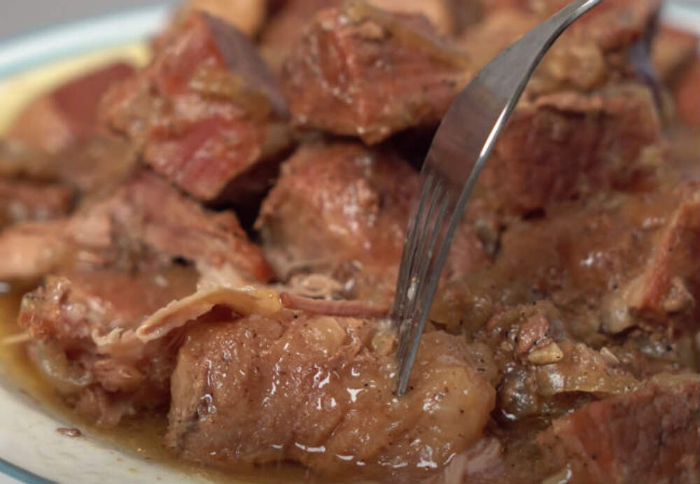 Совсем необязательно проводить на кухне каждый вечер, чтобы ставить на стол вкусный ужин. Гораздо удобнее будет приготовить томленое с луком мясо один раз в казане, а затем всю неделю просто подавать его с разными гарнирами. На килограмм мяса (в данном случае это говядина, но вы можете попробовать