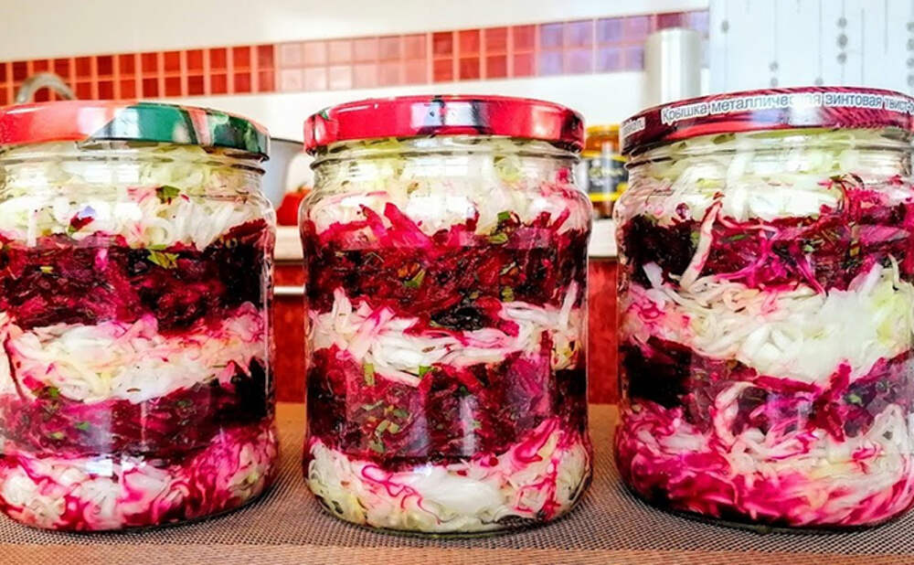 Обычный вариант квашеной капусты традиционно считается легкой закуской. Но стоит разложить ее по банкам слоями со свеклой и она уже превращается в гарнир и салат одновременно: в процессе маринования эти овощи идеально дополняют друг друга и во время зимних застолий становятся главным хитом на