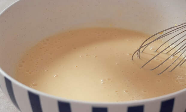 Разбейте яйца в миску, добавьте соль, сахар и растительное масло, всыпайте муку и перемешивайте до однородной консистенции, чтобы тесто стало полностью гладким. Влейте молоко и продолжайте размешивать до полного соединения, затем добавьте кипяток и снова перемешайте, чтобы получить более тонкую текстуру. Прогрейте сковороду, распределяйте тесто тонким слоем и обжаривайте блинчики до румяного цвета с обеих сторон, складывайте их стопкой и накрывайте крышкой, чтобы они стали мягче.