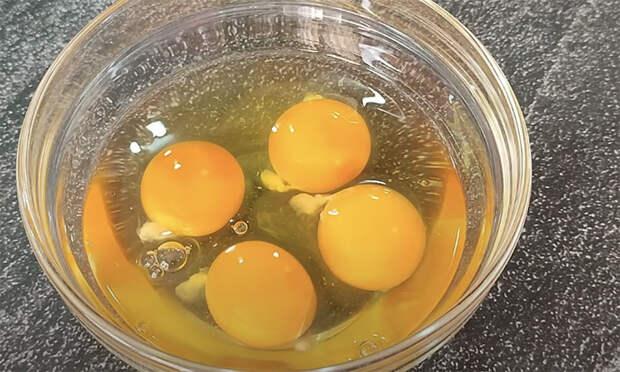 1. Важно использовать свежие яйца. Возьмите глубокую миску, чтобы было удобно взбивать яйца без разбрызгивания.