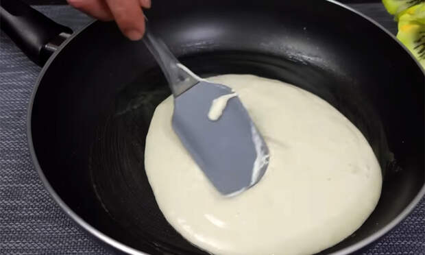 Соедините дрожжи, сахар и воду комнатной температуры, тщательно размешайте до растворения ингредиентов. Добавьте муку и соль, перемешайте до получения однородной массы, затем влейте оливковое масло и снова аккуратно перемешайте, чтобы тесто стало жидким, но однородным. Разогрейте сковороду, смажьте её оливковым маслом и вылейте жидкое тесто, равномерно распределяя по поверхности.