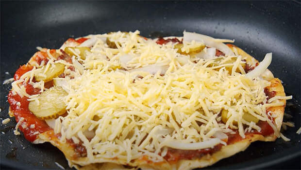 Сыр натереть на крупной терке. Огурцы нарезать тонкими кружочками. Лук нарезать тонкими полукольцами. Из лаваша вырезать круг диаметром чуть меньше сковороды (чтобы легко переворачивать).