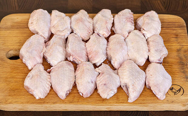 Приготовление: Разделите крылья, освободив их от косточек. Для этого разрежьте крыло вдоль между костями, аккуратно вытяните их и снимите мясо, сохраняя его целым. Получившиеся кусочки сложите в миску. Для панировки смешайте муку с солью, перцем и приправами. Обваляйте мясо в этой смеси, затем быстро окуните в холодную воду и снова верните в муку.