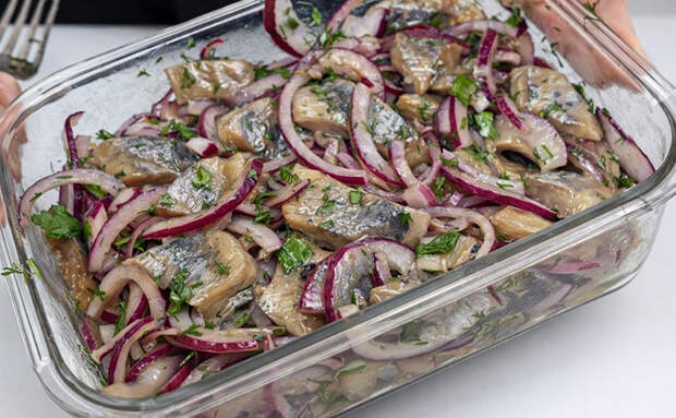Недорогая селедка будет вкуснее красной рыбы: маринуем в луке с соевым соусом