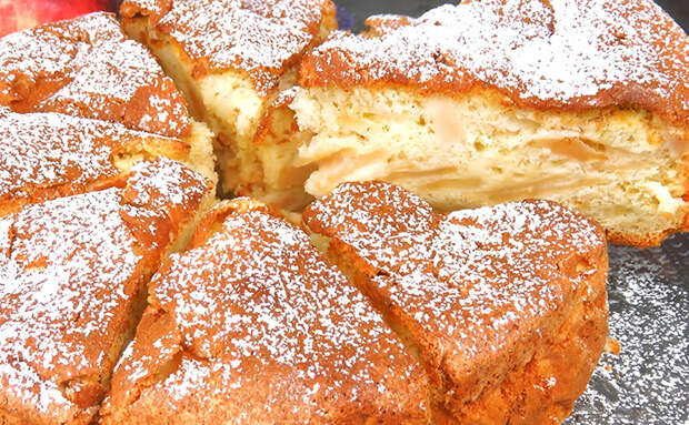 За счет двух видов теста королевская шарлотка получается намного нежнее обычной, тут нет риска получить пересушенные коржи. Большое количество фруктов в начинке в духовке само превращается в нежнейший крем: пирог выходит большим, но готовить его очень просто.