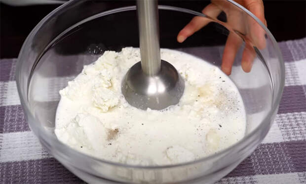 Когда масса станет мягкой, прогрейте ее на слабом огне или в микроволновке короткими импульсами, постоянно помешивая. Желатин должен полностью раствориться и превратиться в жидкость. Добавьте в растворенный желатин пару ложек творожного крема, размешайте до однородности и только потом соедините с основной массой. Еще раз тщательно перебейте блендером.