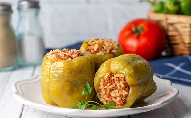 Сезонные овощи позволяют приготовить фаршированные перцы так, чтобы хватило и на стол, и в заготовку. Сочный фарш из двух видов мяса с рисом и обжаренными овощами делает начинку нежной и ароматной. Перцы медленно томятся в густом соусе и становятся особенно вкусными, часть заготовки можно просто заморозить, а затем достать и в любой момент быстро поставить на стол вкусный обед.