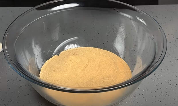 1. В теплой воде (примерно 36–38 °C, не горячей) растворите сахар и всыпьте сухие дрожжи.