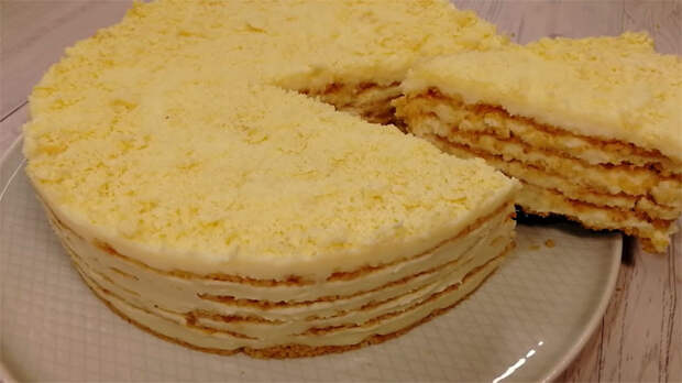 8. Торт можно подавать сразу после сборки — он прекрасно держит форму. Если есть время — поставьте в холодильник на 1–2 часа для лучшей пропитки и охлаждения.