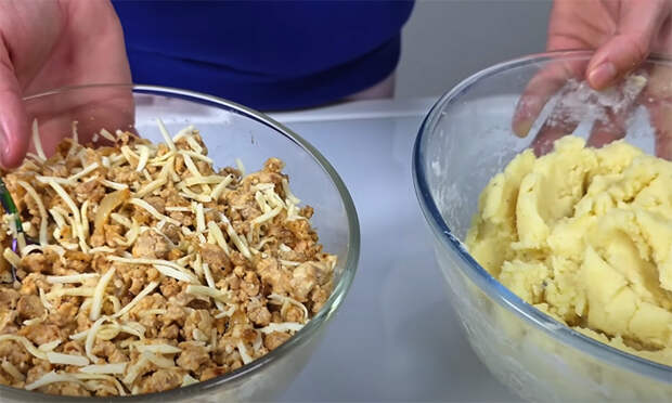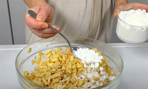 Тем временем подготовьте начинку. Очистите яблоки, удалите сердцевину и нарежьте мелкими кубиками. Сбрызните лимонным соком, добавьте кукурузный крахмал, сахар и корицу, хорошо перемешайте. Для второго варианта натрите тыкву на крупной терке, посыпьте сахаром, добавьте ложку манки и соедините с частью яблок.