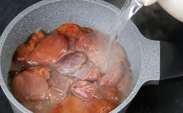 При жарке печенка почти всегда получается сухой, поскольку многие не уделяют внимание правльной подготовке этого продукта. Но при верном подходе та же печенка приобретает совсем другой вкус и становится мягкой, сочной, без горчинки. Достаточно использовать простой кипяток и добавить в процессе немного горчицы.