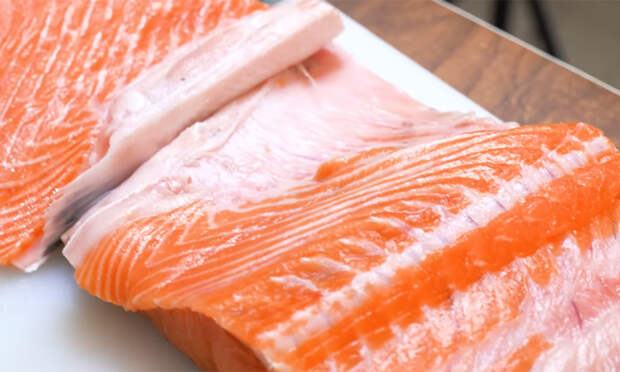Этот способ засолки делает лосося невероятно нежным и ароматным. Масло помогает равномерно распределить соль и сахар, создавая тонкий баланс вкуса без пересола. Рыба получается плотной, но не сухой, с шелковистой текстурой и натуральным вкусом, который ничем не уступает ресторанному.