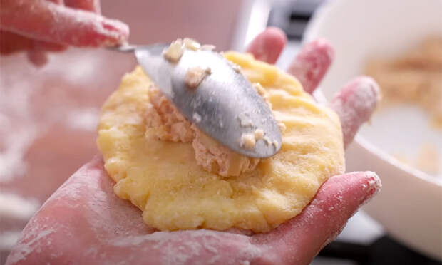 Очистите картофель и отварите целыми клубнями до мягкости. Слейте воду, верните кастрюлю на слабый огонь, чтобы испарилась лишняя влага, и разомните в пюре. Когда масса остынет, добавьте соль, перец, немного сушеного чеснока, вбейте яйцо и вмешайте муку до мягкого, податливого теста.
