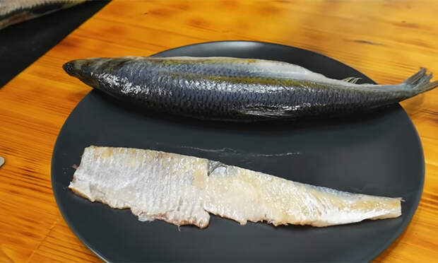 Очистите сельдь, удалив голову, плавники и внутренности, стараясь работать аккуратно, чтобы сохранить филе целым. Разрежьте брюшко, уберите пленки и остатки внутренностей, после чего пройдите ножом вдоль хребта и отделите филе от костей, сохраняя как можно меньше отходов. Снимите шкурку, подцепив ее ножом или пальцами, и стяните ее плавным движением, затем проверьте филе и удалите оставшиеся мелкие кости.
