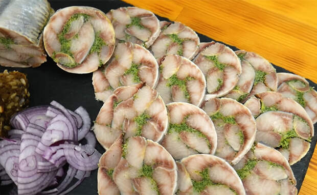 Луковая и укропная прослойка делает вкус структурным, а плотная формовка помогает сохранить форму и удобство нарезки. Такой формат особенно полезен, когда важно подготовить закуску заранее и подать в идеально нарезанном виде.