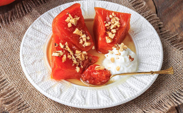 Тыква в этом турецком десерте проходит длительное томление, благодаря чему ее дольки становятся мягкими и прозрачными, сохраняя форму и приобретая сладость, напоминающую мармелад. Сироп с лимонной кислотой и сушеной мятой создаёт утонченный вкус, а обжаренные грецкие орехи добавляют насыщенность и приятную текстуру, превращая простую тыкву в необычное лакомство.