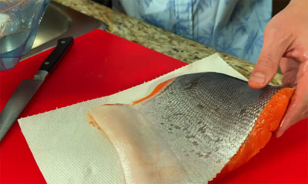 Начните с подготовки рыбы, очистив кожу от чешуи, затем тщательно промокните поверхность бумажными полотенцами, чтобы убрать влагу и обеспечить правильную обжарку. Разрежьте рыбу на порционные куски, смажьте растительным маслом с двух сторон и присыпьте солью и перцем только со стороны мякоти, оставив шкуру без соли для плотного контакта со сковородой. Дайте рыбе немного постоять при комнатной температуре, пока вы готовите продукты для соуса.
