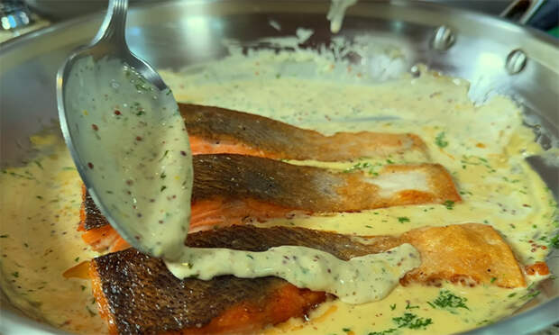 Любую рыбу лучше жарить на стальной сковороде, чтобы она оставалась сочной и ароматной. Вкус же ей проще всего добавить легким сливочным соусом, он сделает все блюдо по-настоящему праздничным. Этот рецепт позволит вам приготовить действительно вкусный ужин, притом брать для него можно и красную, и белую рыбу.