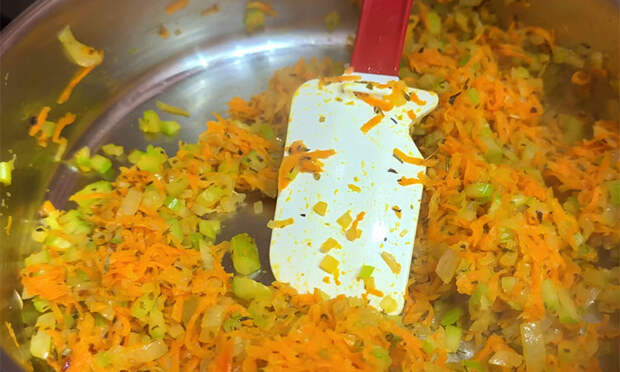 Нарежьте лук кубиками и обжарьте на растительном масле до легкой золотистости. Добавьте натертую морковь и мелко нарезанный сельдерей, прогрейте овощи несколько минут. Всыпьте итальянские травы и добавьте натертый чеснок, чтобы специи раскрыли свой аромат в горячем масле. Выложите фарш к овощам, приправьте его солью и перцем, и обжаривайте в течение 5–7 минут, разбивая комочки лопаткой.