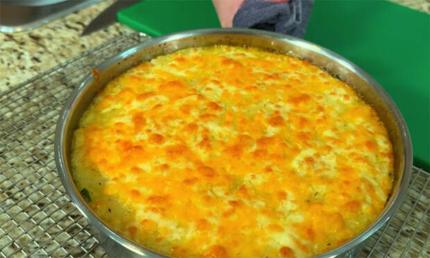Отправьте запеканку в духовку, разогретую до 220°, на 7–10 минут, пока не образуется аппетитная румяная корочка.