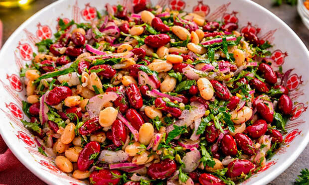 Грузинский салат «Красное и белое»: 2 банки фасоли и такая заправка, что ее вымакают до капли