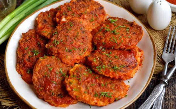 Кто бы мог подумать, что из двух луковиц и пары яиц можно сделать полноценный ужин. Манка связывает сок лука, превращая его в плотное тесто, которое жарится до золотистого цвета и тает во рту. А простая заливка из йогурта и томатов придает луковым котлетам вкус почти рыбных, подавать их можно без всякого гарнира.