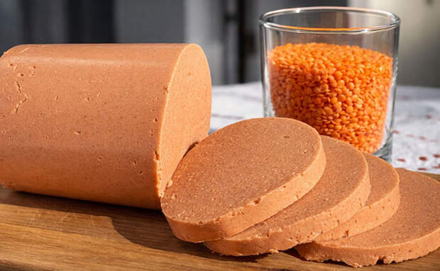 Колбаса из чечевицы вкуснее мясной. Плотная, сочная, полностью натуральная