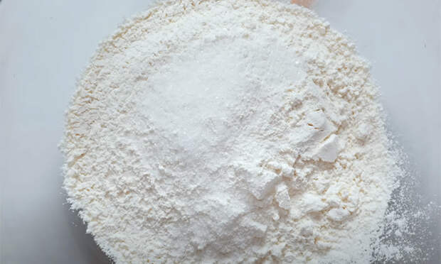 Соедините муку с солью, добавьте растительное масло и влейте воду. Перемешайте венчиком до однородного состояния, чтобы не осталось комков. Всыпьте щепотку сахара для баланса вкуса и оставьте тесто при комнатной температуре на 10–15 минут. Для начинки мелко нарежьте зелень и чеснок. Соедините с творогом, слегка подсолите и перемешайте.