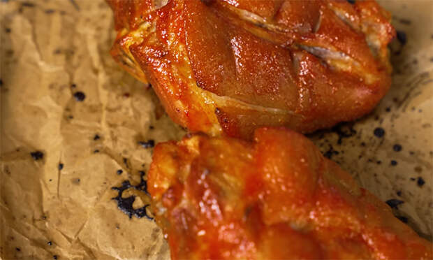 Главная особенность настоящей чешской рульки — потрясающая намазка на основе меда, острого кетчупа и копченой паприки, которая делает мясо внутри невероятно мягким, но снаружи сохраняет золотистую корочку. Кроме того, перед запеканием рульку нужно обязательно проварить, тогда весь сок точно запечатается.