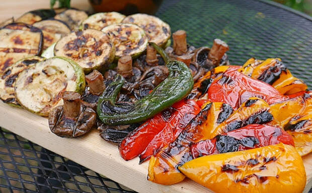 Овощи на гриле можно готовить и без маринада, как простой гарнир. Но гораздо вкуснее замариновать их с соевым соусом — такие овощи и грибы на углях разлетаются со стола быстрее шашлыка.