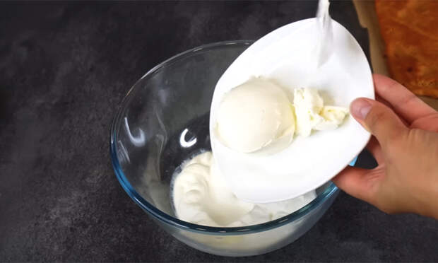 Готовое тесто выложите на противень с бумагой, разровняйте. Выпекайте при 180° около 5-8 минут, чтобы корж остался мягким. Слегка остудите, переверните, снимите бумагу.