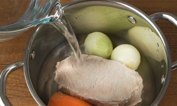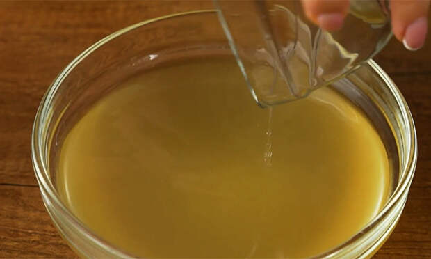 Подготовьте желатин, всыпьте его в небольшую миску, влейте холодную воду и оставьте для набухания, затем прогрейте в микроволновке до полного растворения. Влейте теплый желатин в бульон и тщательно перемешайте, после чего снова процедите смесь, чтобы убрать возможные частицы и сделать бульон максимально чистым. Разберите мясо вилкой на тонкие волокна, чтобы кусочки были аккуратными и ровными.
