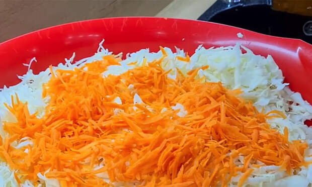 Выберите плотные кочаны весом от 3 кг. Убедитесь, что листья плотные, без пятен и трещин, кочерыжка тонкая. Срежьте верхние листья и нарежьте капусту тонкой соломкой. Морковь натрите на крупной тёрке. Смешайте капусту с морковью, но не мните её руками, чтобы избежать потемнения и скользкой текстуры. Приготовьте рассол: растворите 30 г соли в 1 л воды. Используйте воду без хлора — родниковую, бутилированную или фильтрованную.