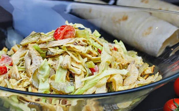 Классическая уличная шаурма привычно подается в лаваше, а дома ее намного вкуснее будет развернуть в полноценный салат. В таком варианте все главные вкусы сохранятся, но шаурма получится менее калорийной. Из мяса мы рекомендуем взять маринованную курицу: такое сочетание создает гармоничное блюдо, в котором есть и насыщенность мяса, и легкость овощей, и пикантность соуса.